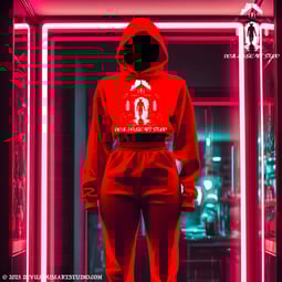 RED DEVIL HOUSE ART STUDIO - WOMENS CROP TOP HOODIE & JOGGER SET - WHITE LOGO